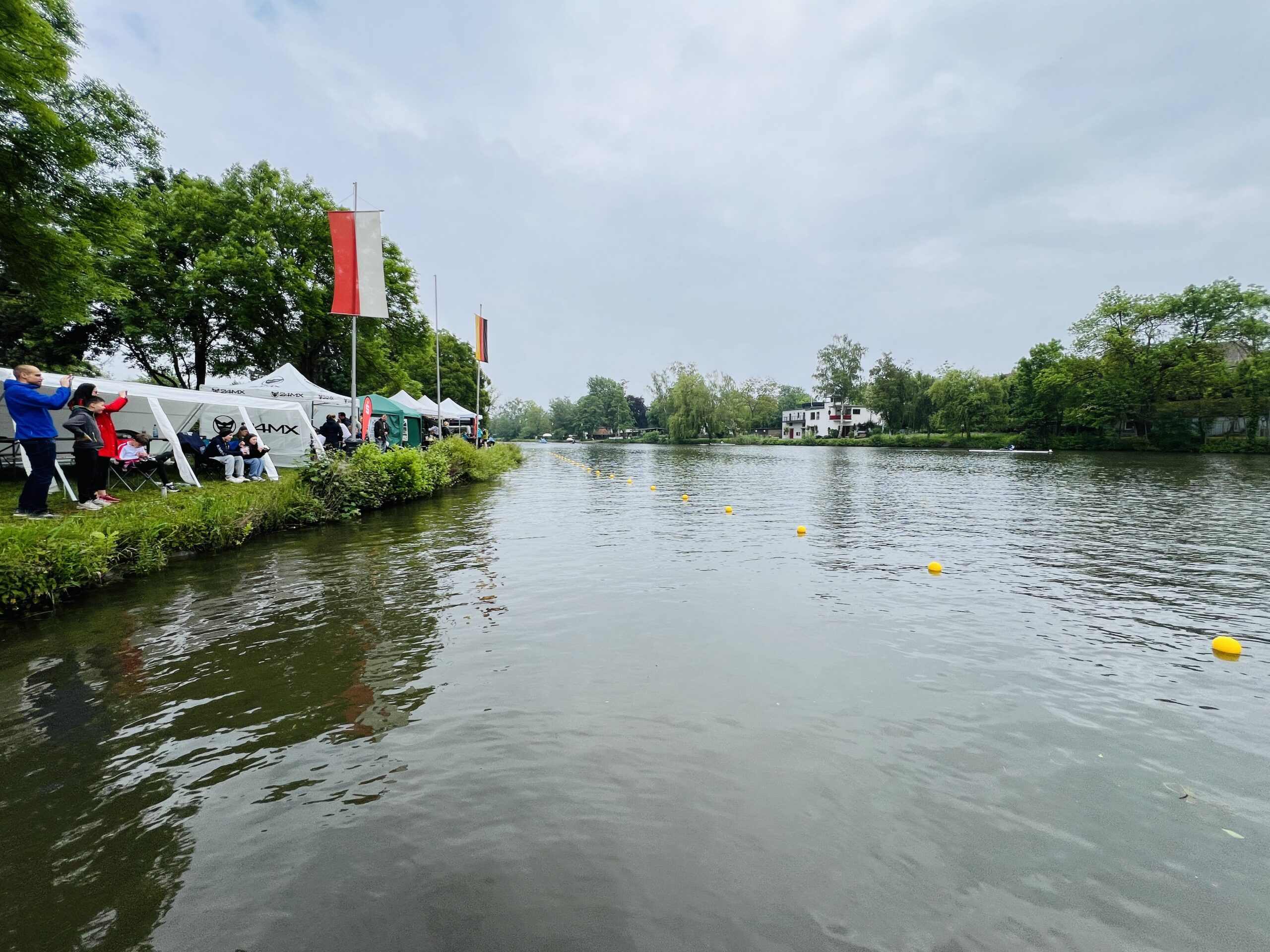Diesmal sitzen wir schon um 7 Uhr morgens im Auto und beäugen gespannt die dunklen Wolken am Himmel. Aktuell regnet es stark, aber die Hoffnung stirbt zuletzt. Und tatsächlich: Mit unserer Ankunft in Gießen verzieht sich das Regenwetter und wir können den zweiten Regatta-Tag im Trockenen hinter uns bringen. Das Wasser ist dieses Mal etwas unruhiger, aber wir sind dafür innerlich schon etwas lockerer als noch am Tag zuvor.