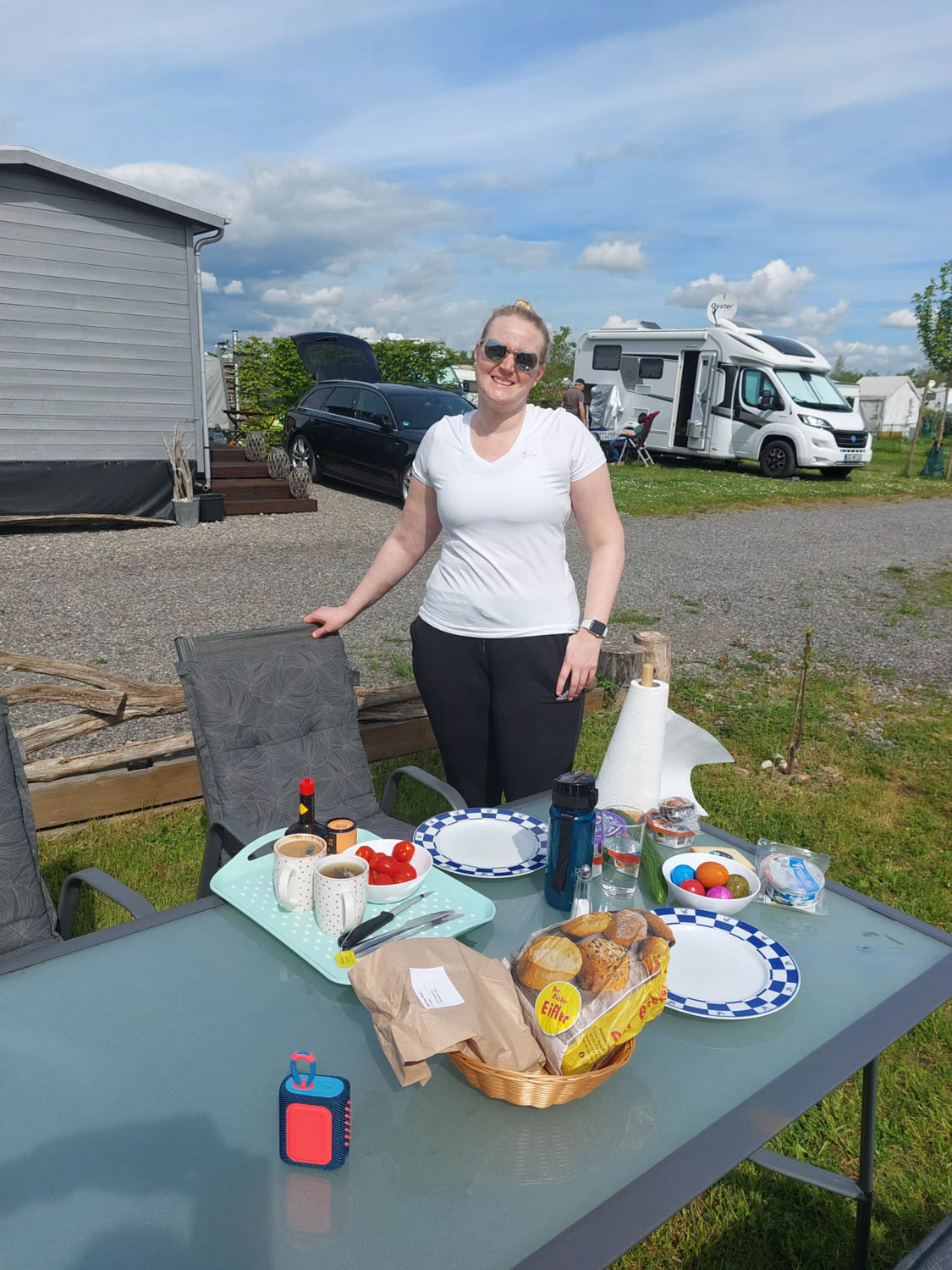 Die nächsten Tage verbringen wir mal mit mehr, mal mit weniger Leuten. Insgesamt sind 12 Ruderinnen und Ruderer der Hellas beim Trainingswochenende dabei: Ailyn, Ansgar, Christian, Christoph, Laura, Manfred, Mirjam, Simone, Sophie, Theresa, Thomas, Thorsten. Jeder hat auf dem Campingplatz direkt am See seine eigene Unterkunft – je nach individueller Vorliebe in einer festen Hütte, im Bauwagen oder im klassischen Zelt.